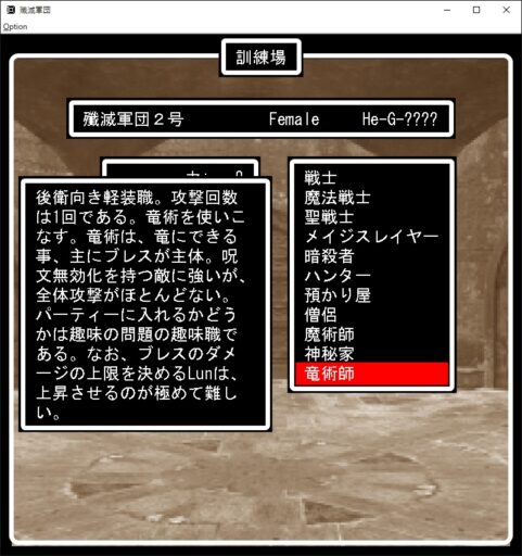 10階層+裏ダンジョンとボリュームのある作品。36種族・32種類の職業とキャラメイクの選択肢が多いが、難易度を下げるための強力な種族がいる。性差はなく、転職もない。また、最終盤でマップリセット機能があり、強くてニューゲームもできる。