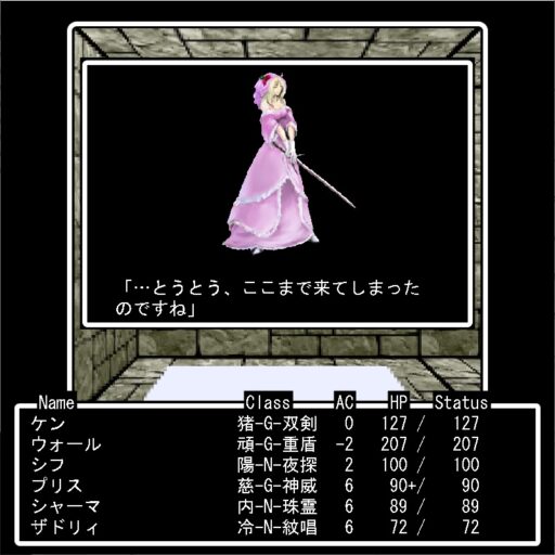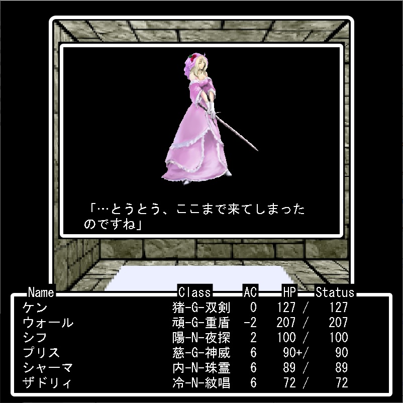 全10階層。6種族+12の職業。転職あり。呪文は魔・僧・闇・姫の4系統。呪文レベルは最大8。キャラメイクのボーナスポイントは7~10からランダム。女性キャラが優遇。背景なし。アイテム図鑑・モンスター図鑑あり。とり夫氏デザイン採用。魔物図鑑は一部未完成。