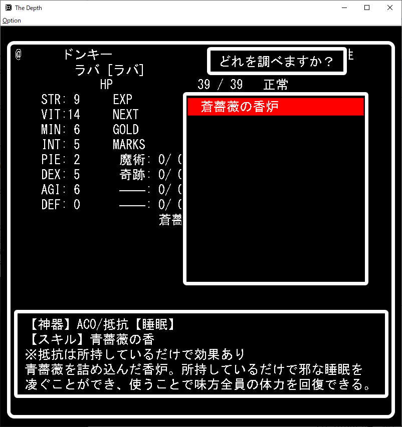 | 催眠の煙 | 戦闘 | 敵グループを睡眠にする 抵抗されることがままある |