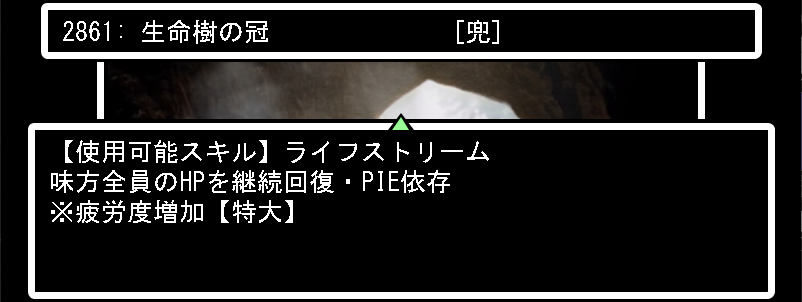 | 再生の祝言 | 戦闘 | 自身のHPをPIE×1.0分持続回復(5T) |
