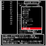 | ドラゴンステーキ(廃殿層のレストランで幼竜の肉を調理してもらう) 戦闘前にキャンプで使用しておけば、戦闘中最大HP+100・持続回復+3・STR+3(100歩)。 |